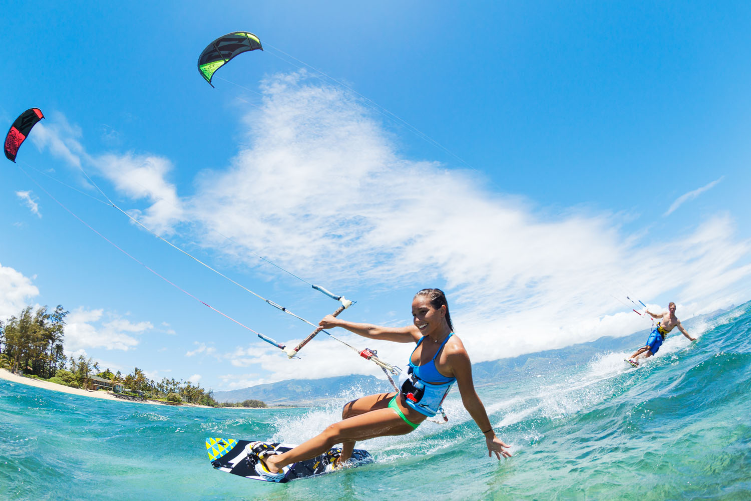 - Pilotaggio a terra e in acqua di un kite a 4 linee di dimensioni variabili da 7 mq a 13 mq a seconda delle condizioni del vento e del livello di apprendimento dell’allievo;